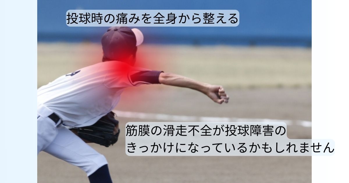 筋膜リリースで全身の動きを整え、投球フォームを見直していくことが、再発を防ぎながらパフォーマンスを高めるための大きなポイントとなります 。