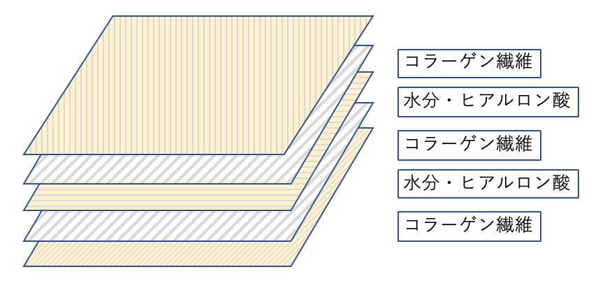 筋膜の構造は下記のようにコラーゲン線維の層で3層構造になっています。