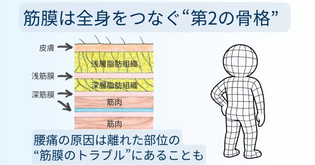 痛みのある部位だけで判断するのではなく、全身の筋膜バランスを整えることが、健やかな状態を目指すためには不可欠です。