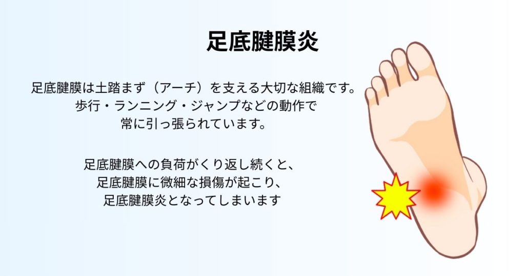 こうした症状が続く場合、足底腱膜炎が背景にあることが多いといわれています。